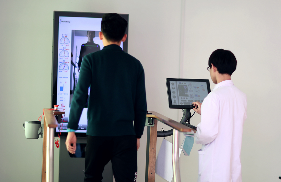 这个虽像极了健身房里的跑步机,可它却比跑步机先进多了,名字叫做数字化监控跑台。这个跑台是姿势分析、步态监控训练康复器材,抗干扰高速红外摄像捕捉系统,实时监控步行及奔跑中髋膝踝等骨关节的角度变化情况,纠正躯干代偿;大型灵敏压力感应跑台,实时监控记录身体压力中心变化、步长、步宽、廓清及对称性等基本步态分析数据。适用于任何神经损伤、骨损伤及运动损伤的患者,进行步态建立训练,以及运动体能提升训练。