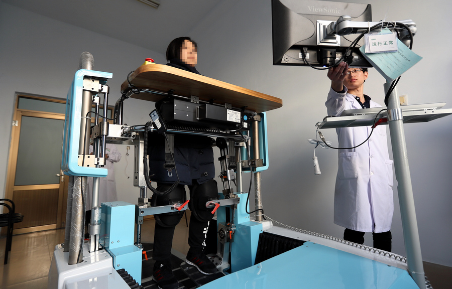 这个大大的机器人,有没有变形金刚的赶脚?它就是帮助下肢行走障碍患者康复的步态训练康复器材,它的名字叫下肢智能康复训练仪,主要适应于因不完全脊髓损伤、脑卒中、创伤性脑病、多发性硬化症、下肢肌肉萎缩、神经性病变造成的下肢行走障碍者,或是银发族用以改善肢体活动并增进体能。