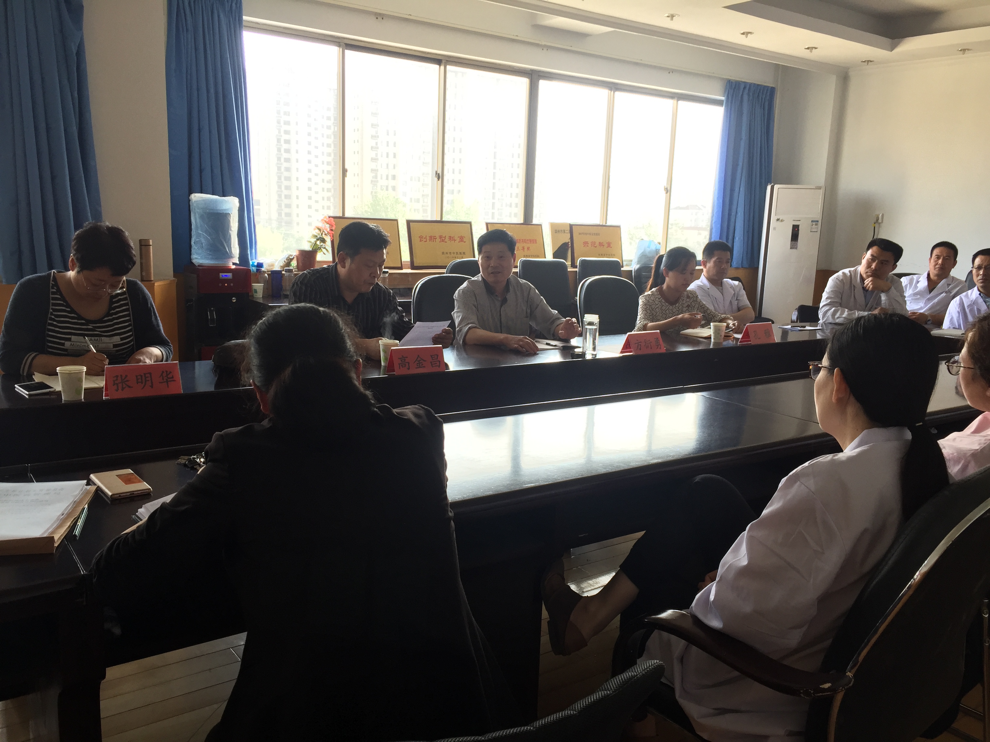 5月7日下午,市卫计委副调研员方衍勇、市中医药管理局副局长高金昌、市中医药管理局中医科负责人张明华及市中医药管理局中医科孔雅一行4人,对我院2018年基层中医药人员培训情况进行调研座谈。市中医医院副院长李福民及医务科有关人员陪同。