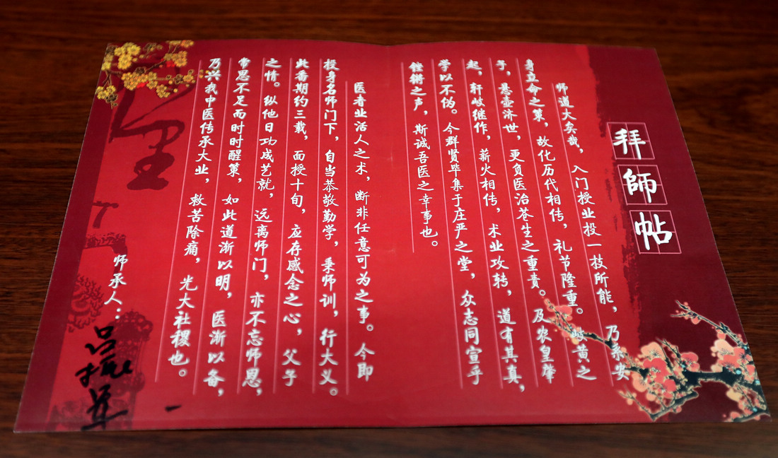 向恩师深深鞠躬,呈《拜师帖》