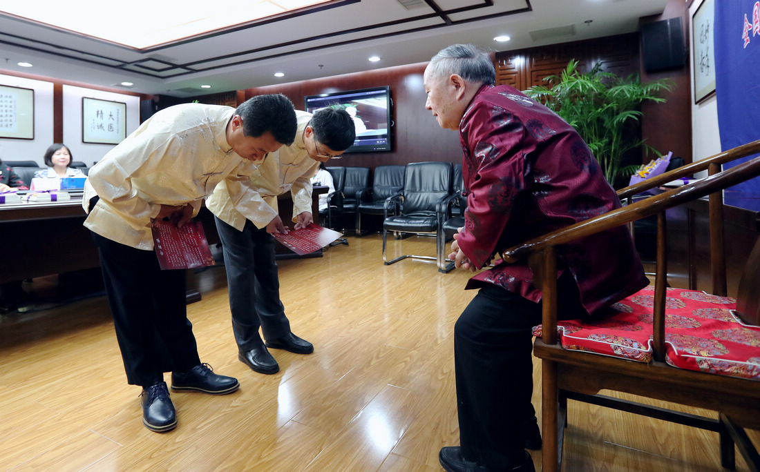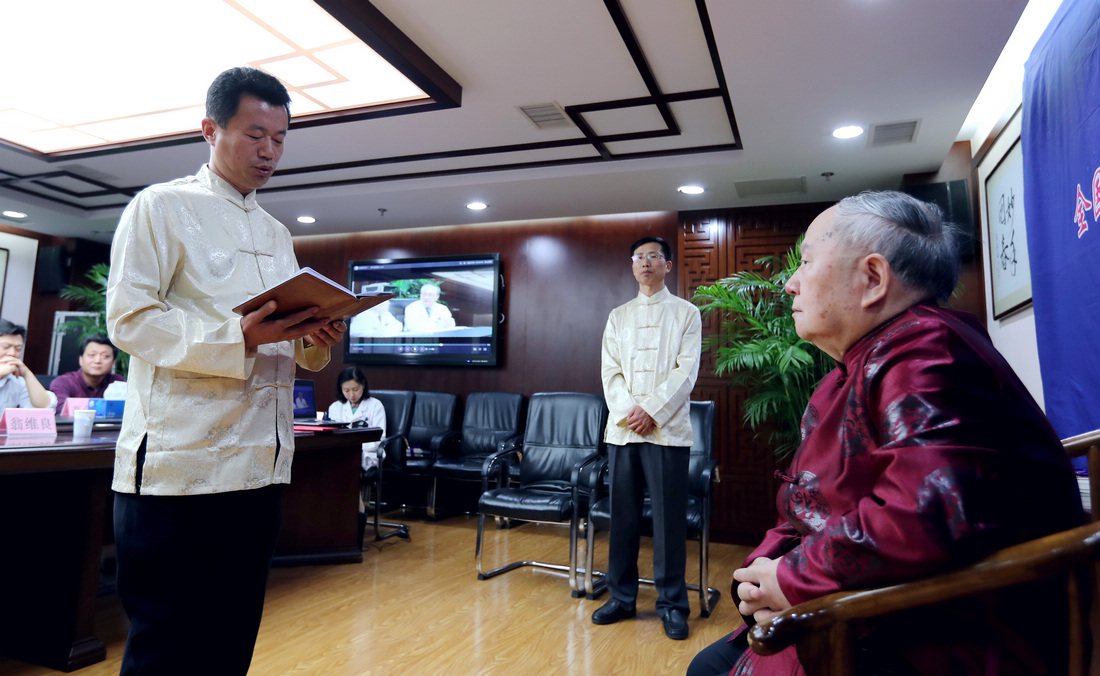 上午九点整,拜师仪式开始。中国中医科学院西苑医院副院长史大卓主持拜师仪式