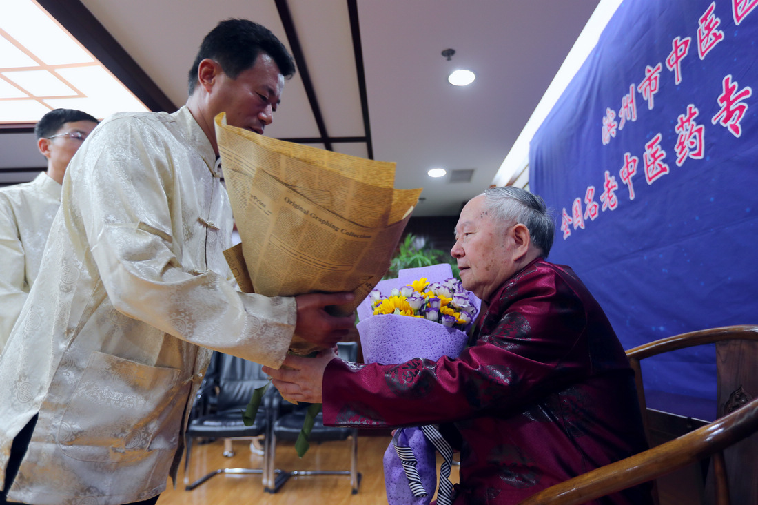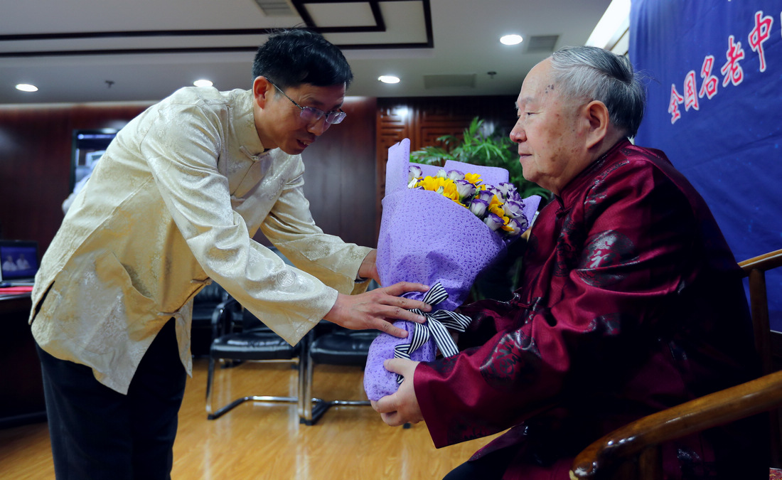 “岐黄之子,悬壶济世,更负医治苍生之重责。”仪式现场,老师和弟子们身着传统服装,在热烈、浓厚的中医传承特色气氛中,徒弟向师父承上拜师贴、敬茶、献花、鞠躬等传统礼仪。同时,翁维良教授寄语弟子,希望弟子传承中医精髓,弘扬中医文化。