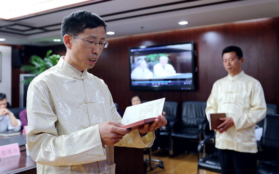 贾在金、吕振军宣读《拜师帖》