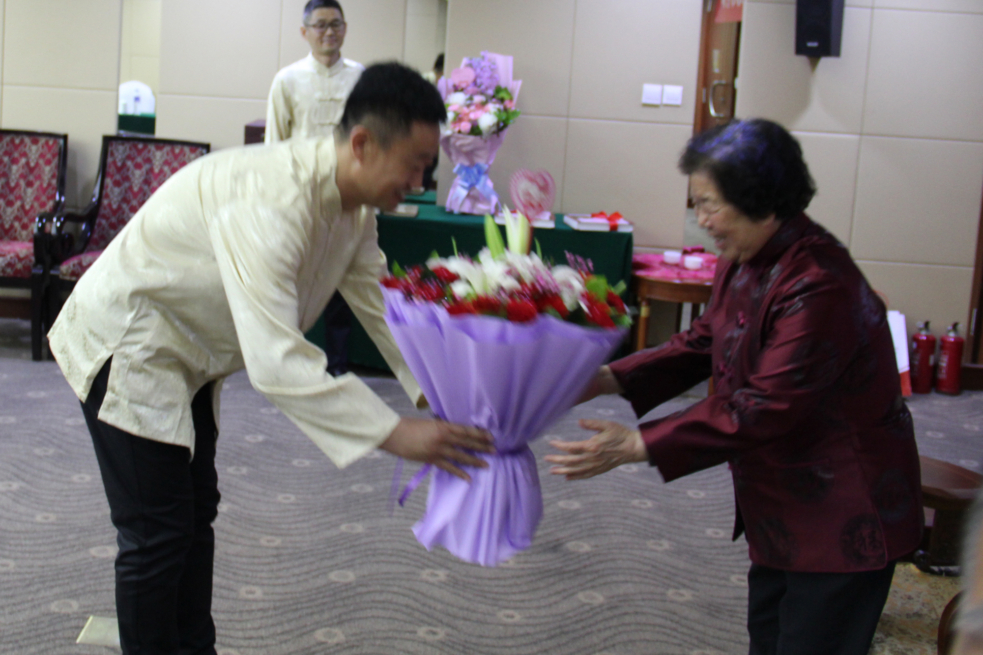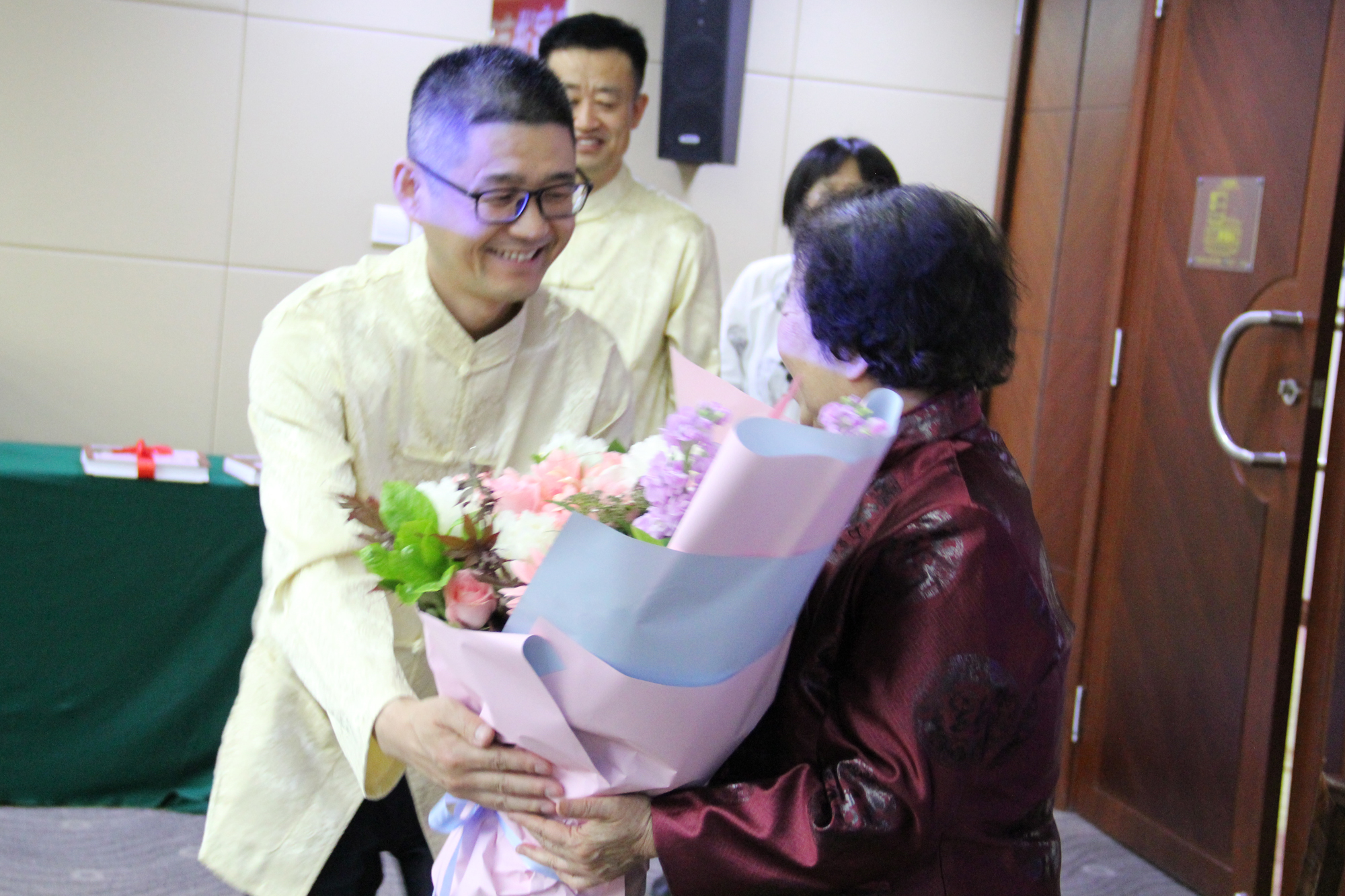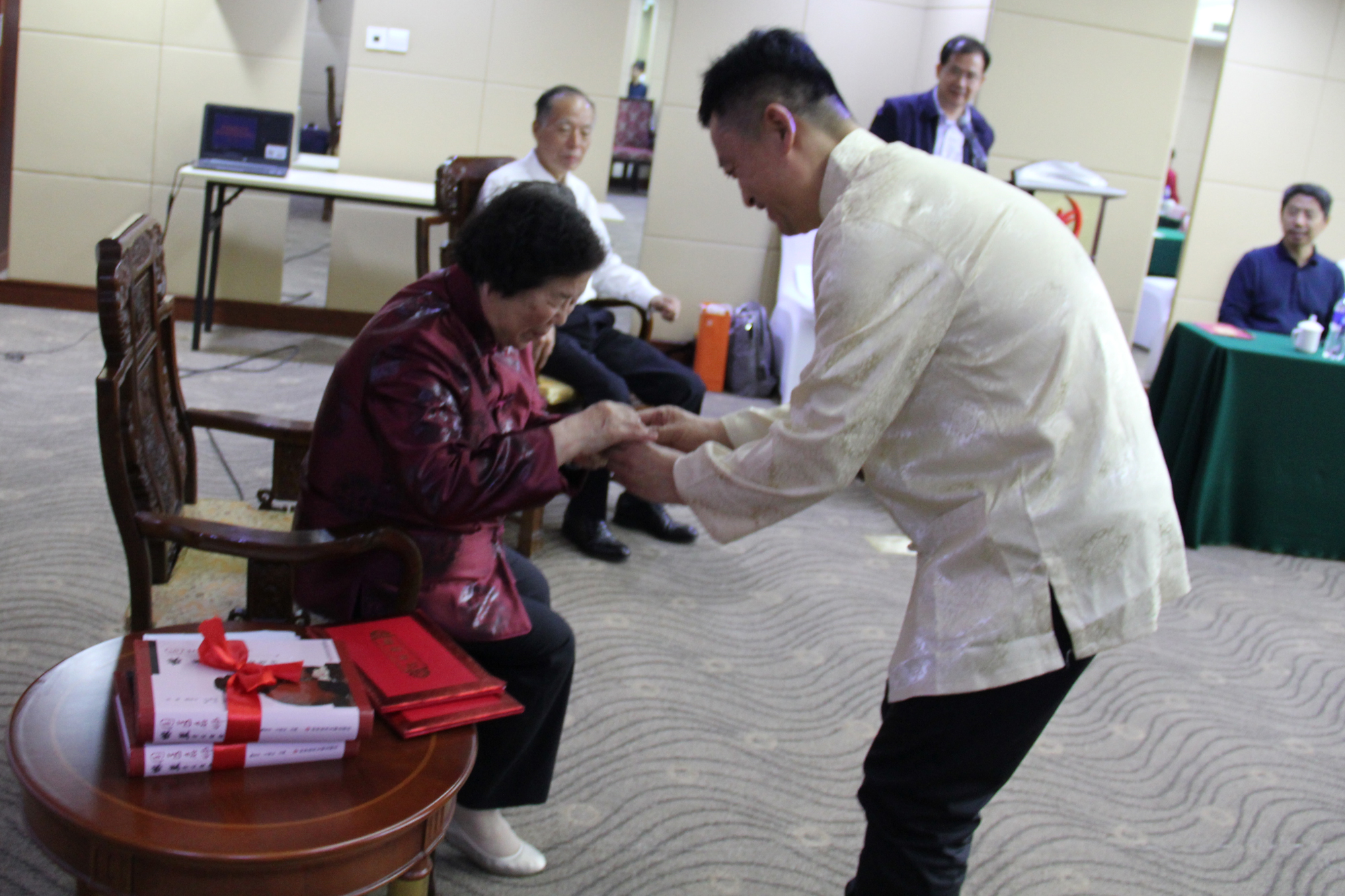 拜师仪式现场,在浓厚的中医传承特色气氛中,徒弟身着唐装,向师父诵读《拜师贴》,林老弟子倪青主任代读《收徒帖》,随后徒弟行拜师礼,鞠躬并向老师敬茶献花。林老给徒弟们赠送专著作为回赠礼。接下来,国家中医药管理局机关党委常务副书记张为佳同志宣读《见证帖》,林兰教授对弟子诫勉训话,望其积极努力,传承并发扬好中医文化。高佩华、石玉丰两位弟子分别宣立誓约,表示一定珍惜此次机会,不负老师厚望。