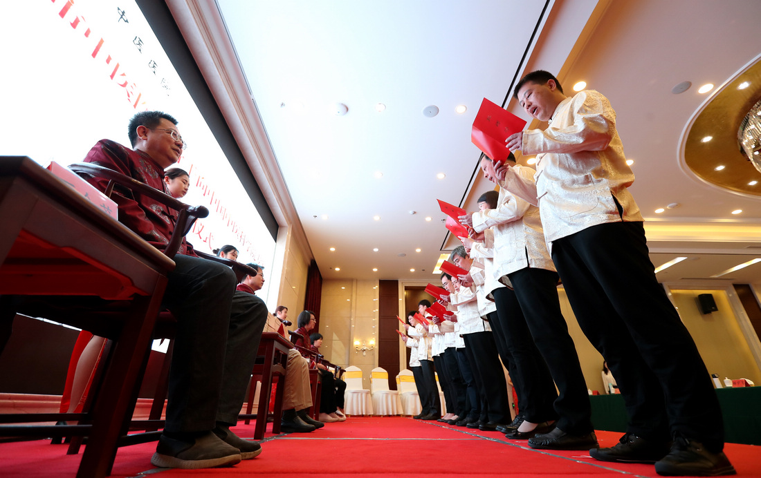 徒弟集体宣读《拜师帖》,并向师父呈《拜师帖》