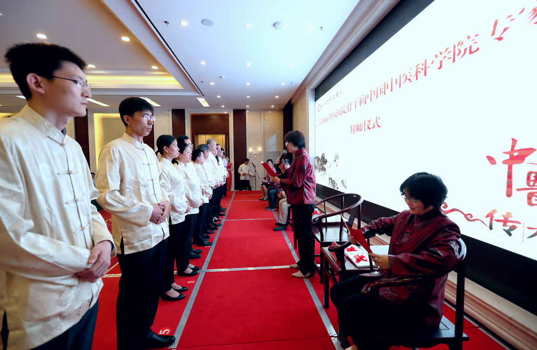 仪式现场,来自中国中医科学院的杨宇飞、苏庆民、丁全茂、黄涛4位教授现场收徒。市中医医院12位骨干医师宣读拜师帖、献茶献花、宣立誓言,正式拜师。此前5月9日和5月13日,市中医医院4位中医骨干人员已分别进京正式拜师国医大师翁维良先生、林兰教授。
