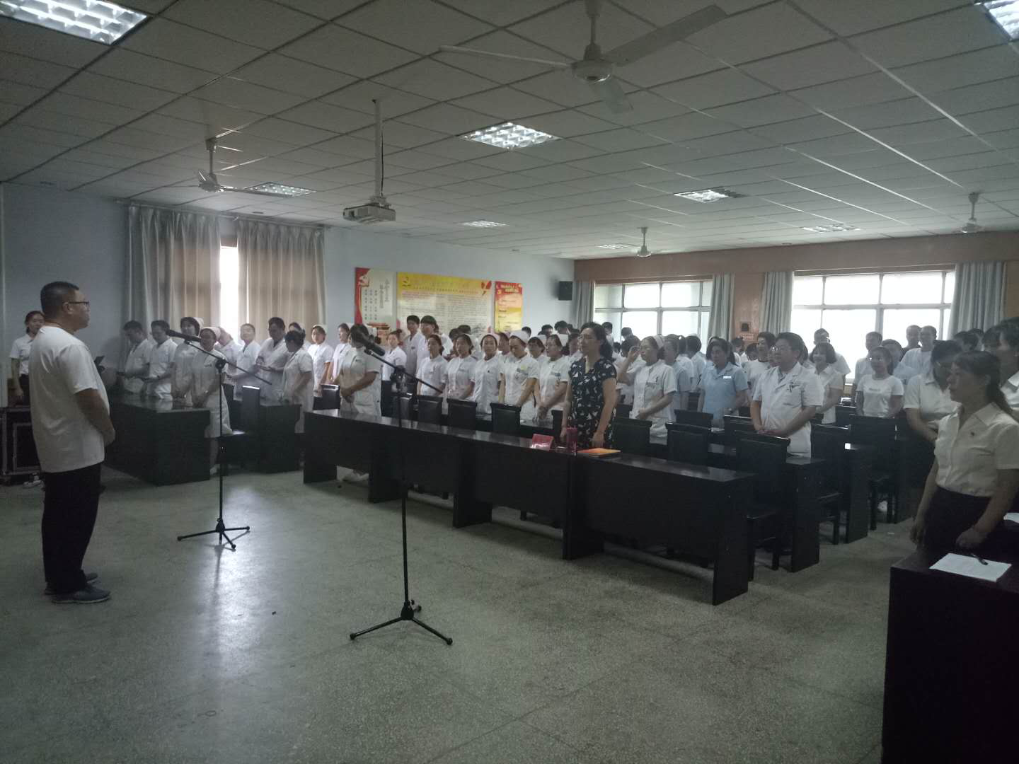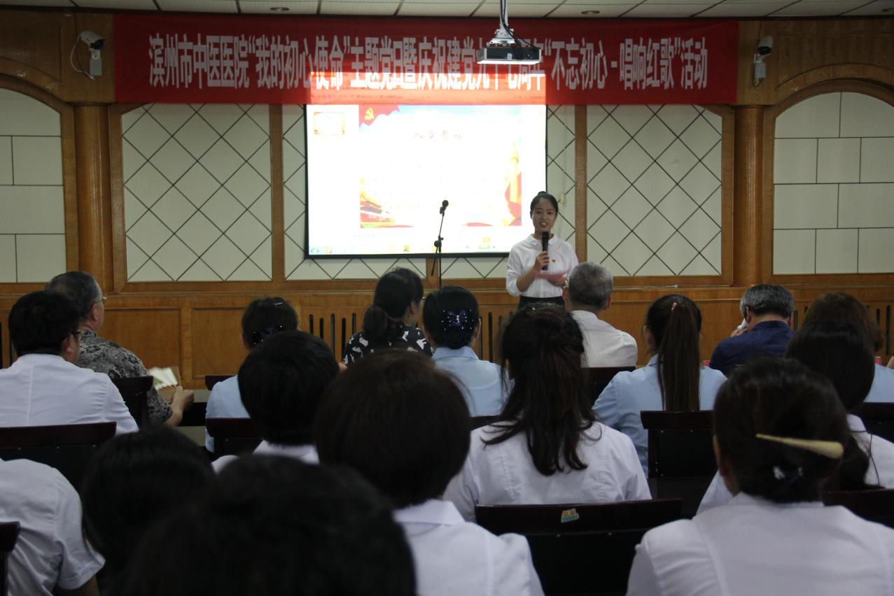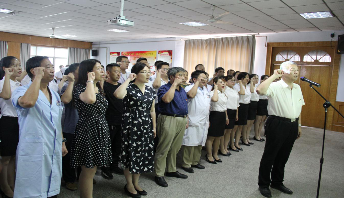 为庆祝中国共产党成立九十七周年,进一步展现医院广大党员和干部职工的精神风貌,抒发爱党、爱祖国的情怀,7月6日下午,我院举行了“我的初心使命”主题党日暨庆祝建党九十七周年“不忘初心·唱响红歌”活动。院党总支领导班子成员、院监事会主任、全体党员和部分职工代表参加了活动。
