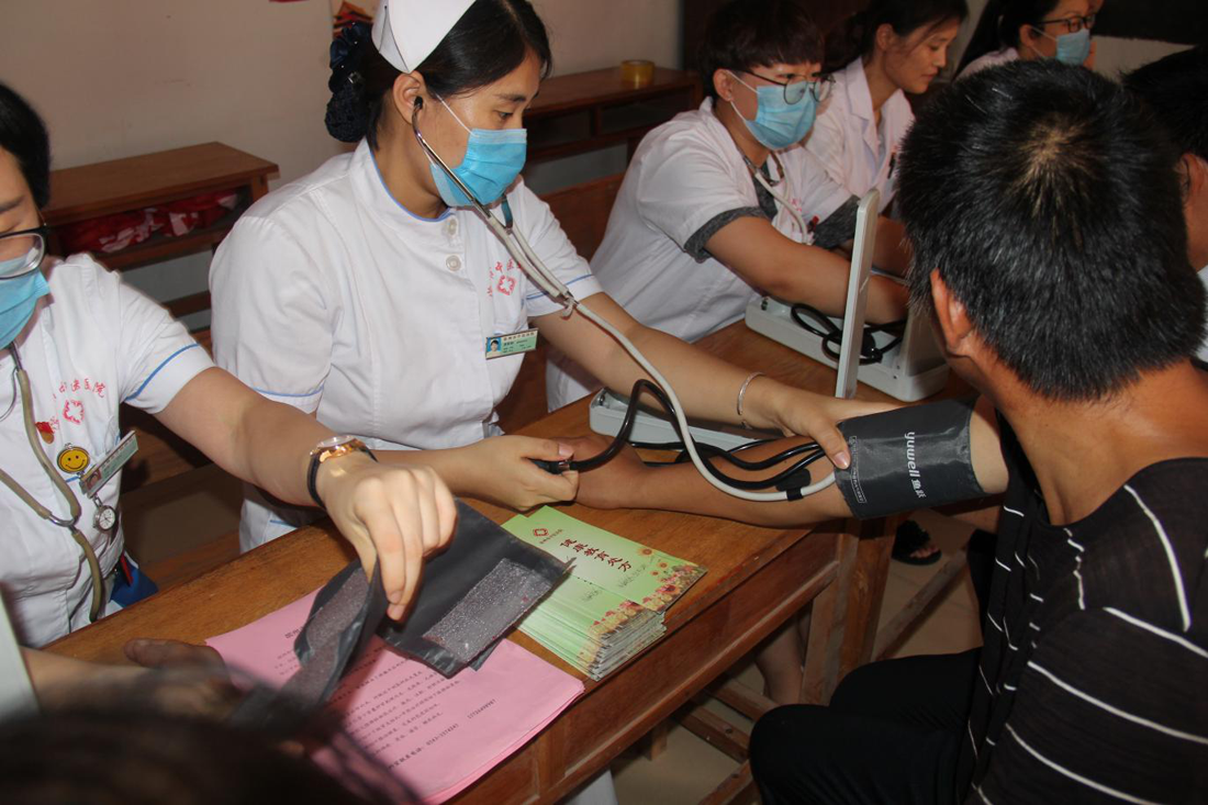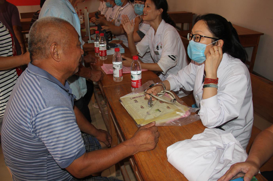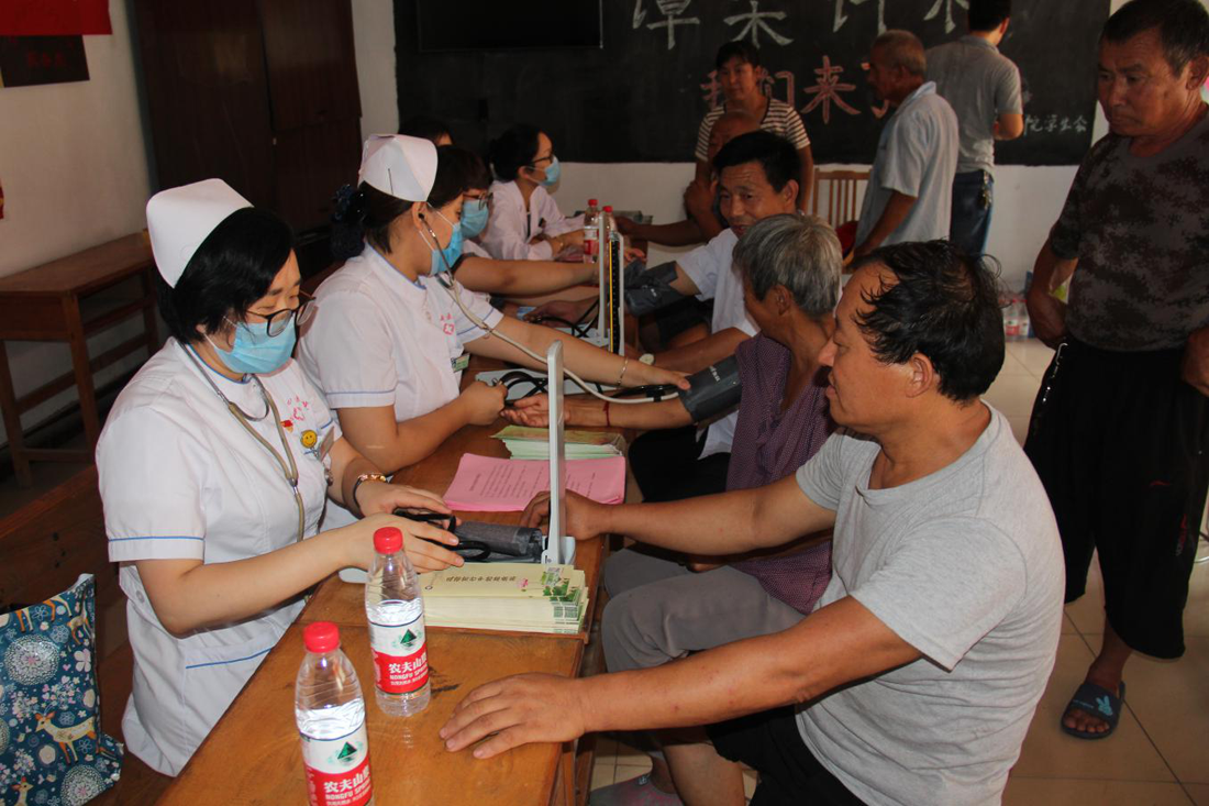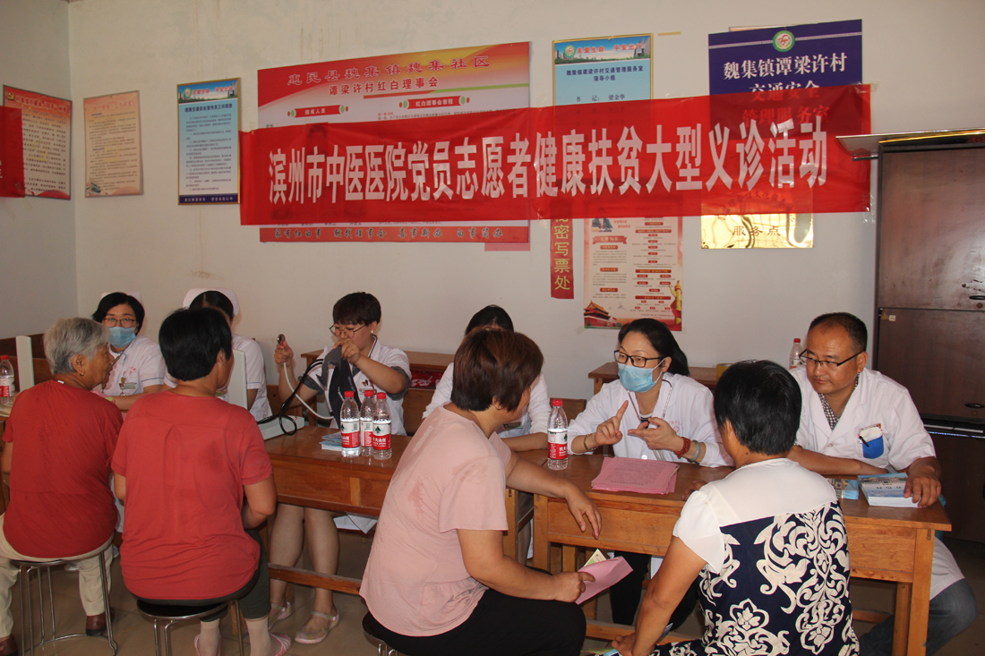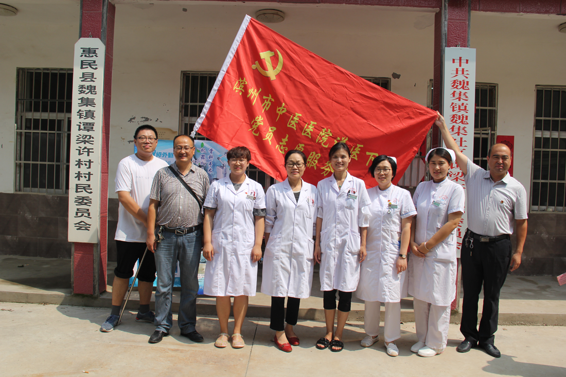 7月25日,滨州市中医医院党员志愿者服务队在党总支副书记袁光骅同志带领下,来到惠民县魏集镇谭梁许村进行义诊活动,把党的温暖和关怀送到了村民的心坎上。