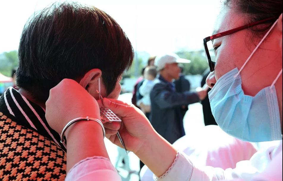 为增强群众的亲身参与度,让群众感受到中医养生保健的奥妙,活动现场还设立了中医药特色技术体验区。耳穴压豆、杵针、核桃灸等中医特色技术受到了群众的极大欢迎。